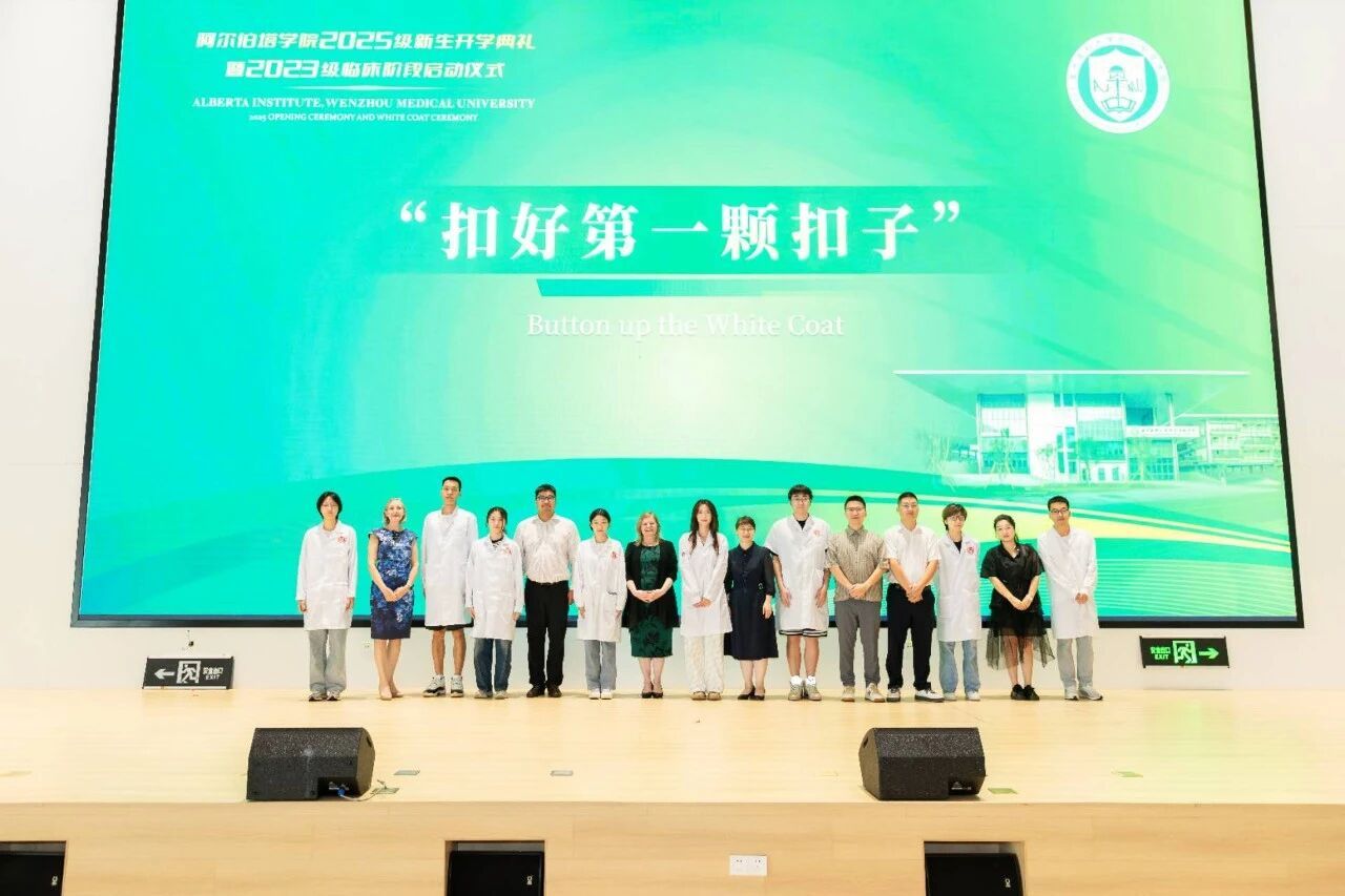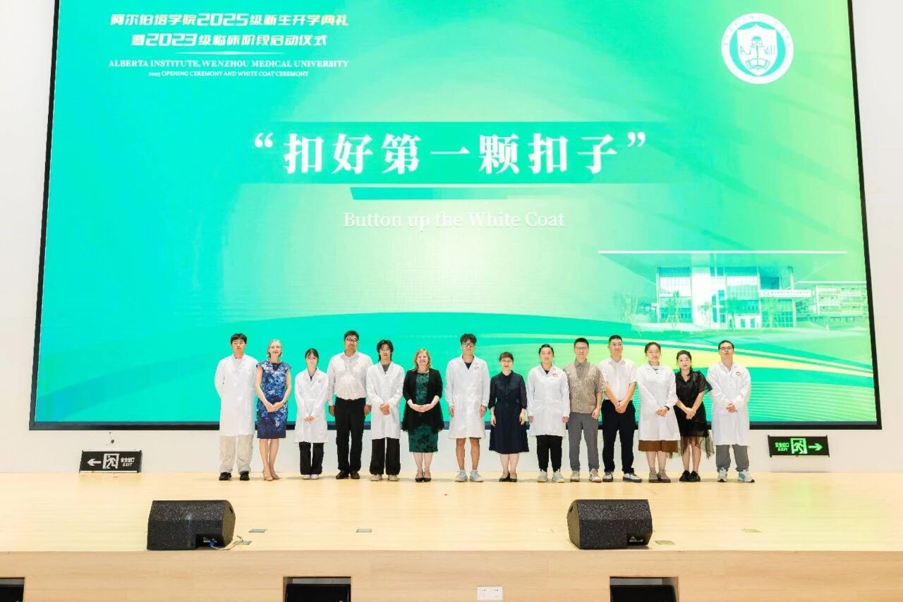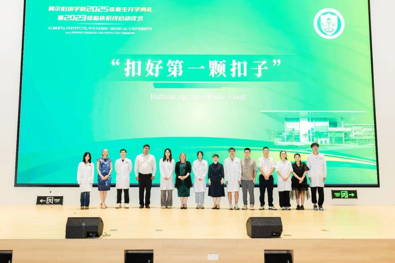 9月24日,鉴黄师 2025级新生开学典礼暨2023级临床阶段启动仪式在国际交流中心报告厅举行。温医大党委委员、副校长朱雪波,学术副校长宋伟宏院士,鉴黄师 外方执行长Tracey Hillier、加拿大阿尔伯塔大学医学与牙学院精神医学系教授、医学人文与艺术项目主任Pamela Brett-MacLean、鉴黄师 联合管理委员会成员Hollis Lai、鉴黄师 副院长朱雪琼,中加两校的教师代表及班主任参加典礼。典礼由鉴黄师 党委副书记王小尚主持。
