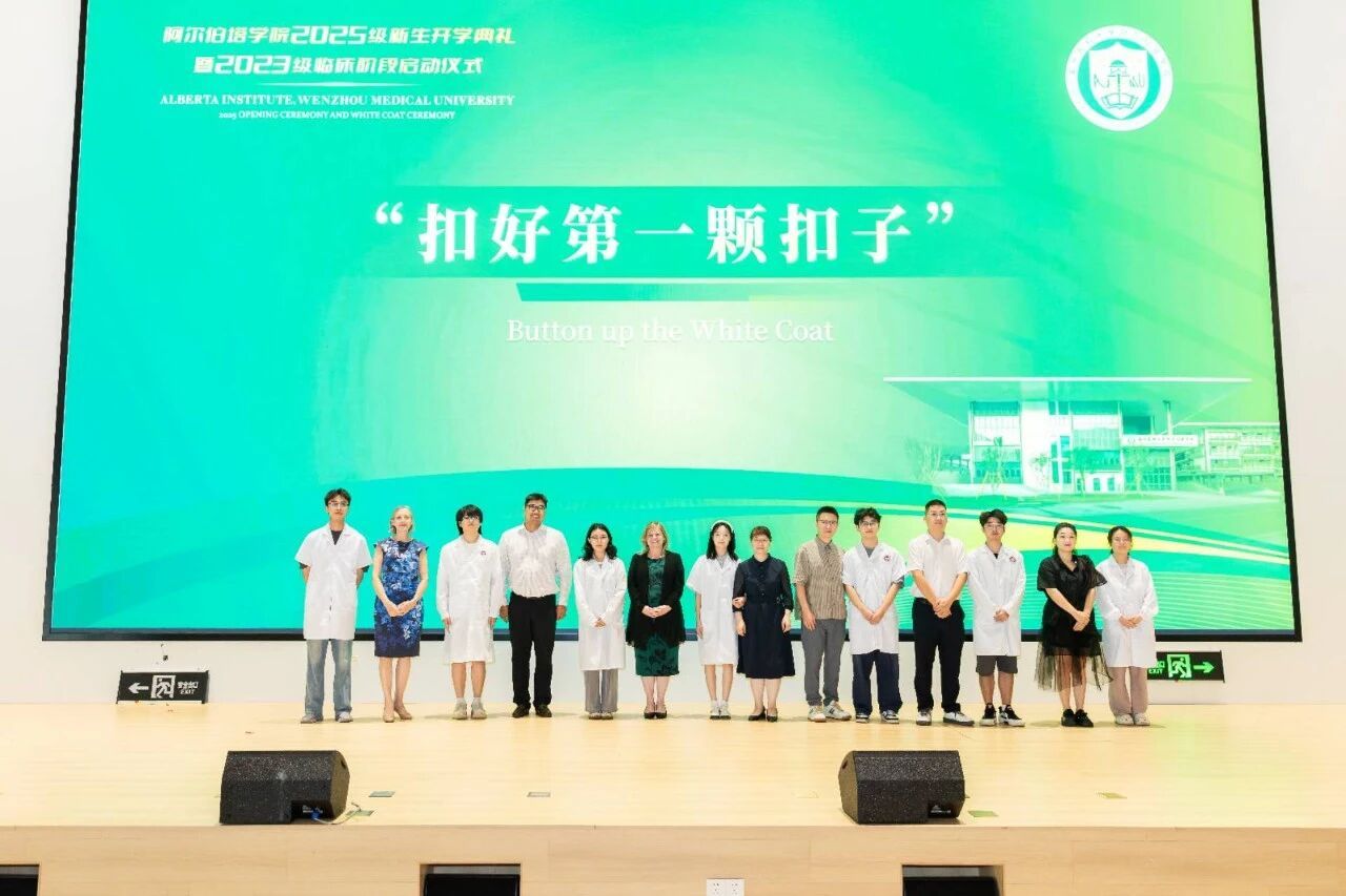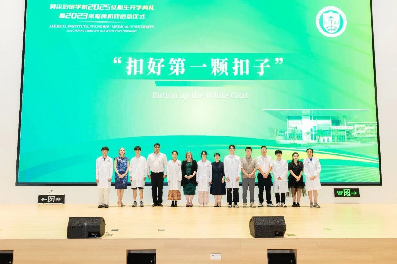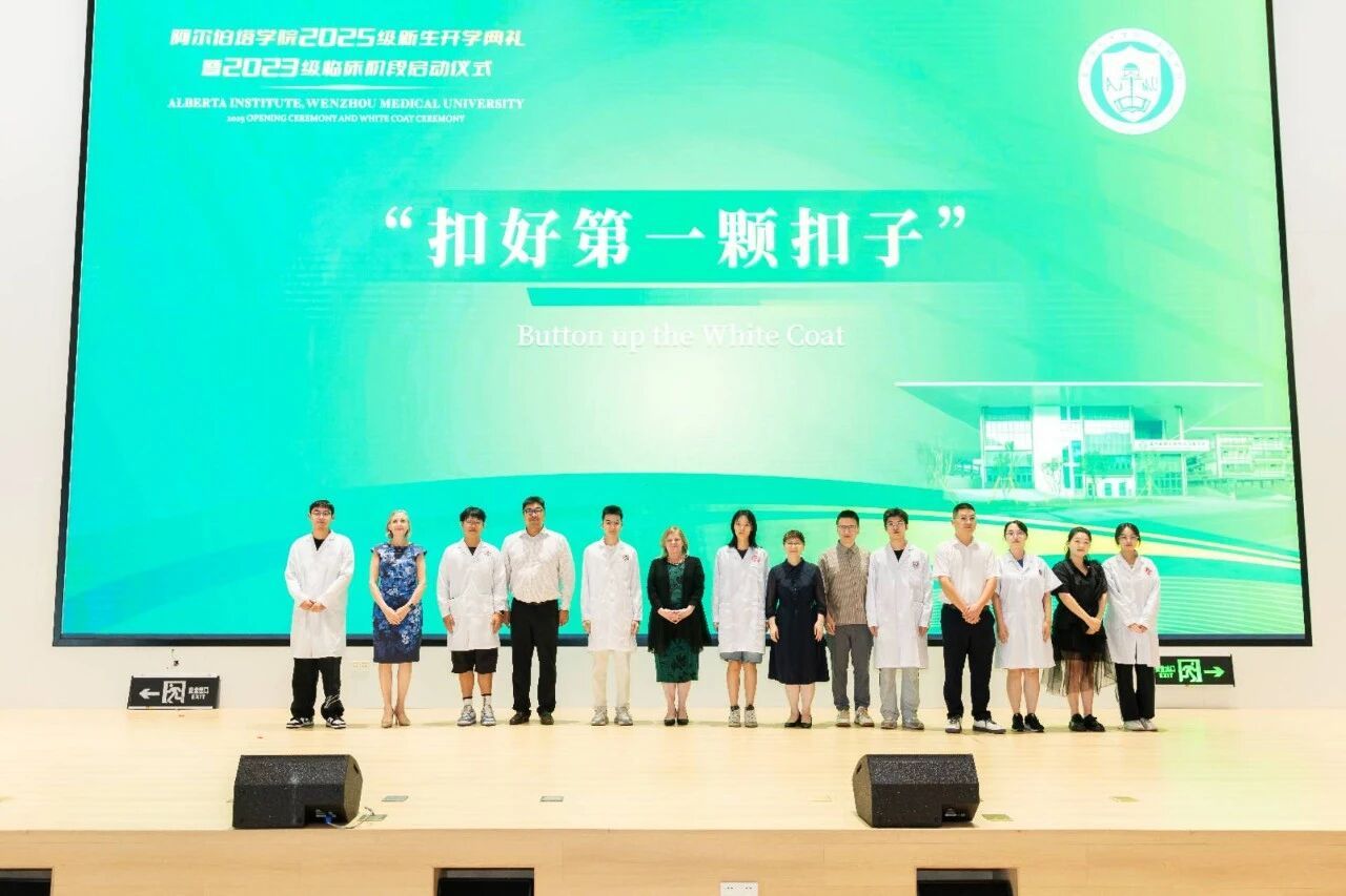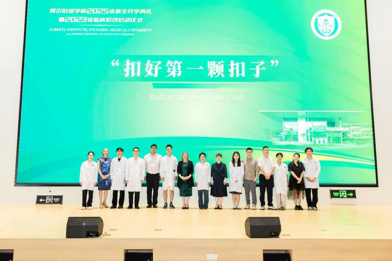 9月24日,鉴黄师 2025级新生开学典礼暨2023级临床阶段启动仪式在国际交流中心报告厅举行。温医大党委委员、副校长朱雪波,学术副校长宋伟宏院士,鉴黄师 外方执行长Tracey Hillier、加拿大阿尔伯塔大学医学与牙学院精神医学系教授、医学人文与艺术项目主任Pamela Brett-MacLean、鉴黄师 联合管理委员会成员Hollis Lai、鉴黄师 副院长朱雪琼,中加两校的教师代表及班主任参加典礼。典礼由鉴黄师 党委副书记王小尚主持。