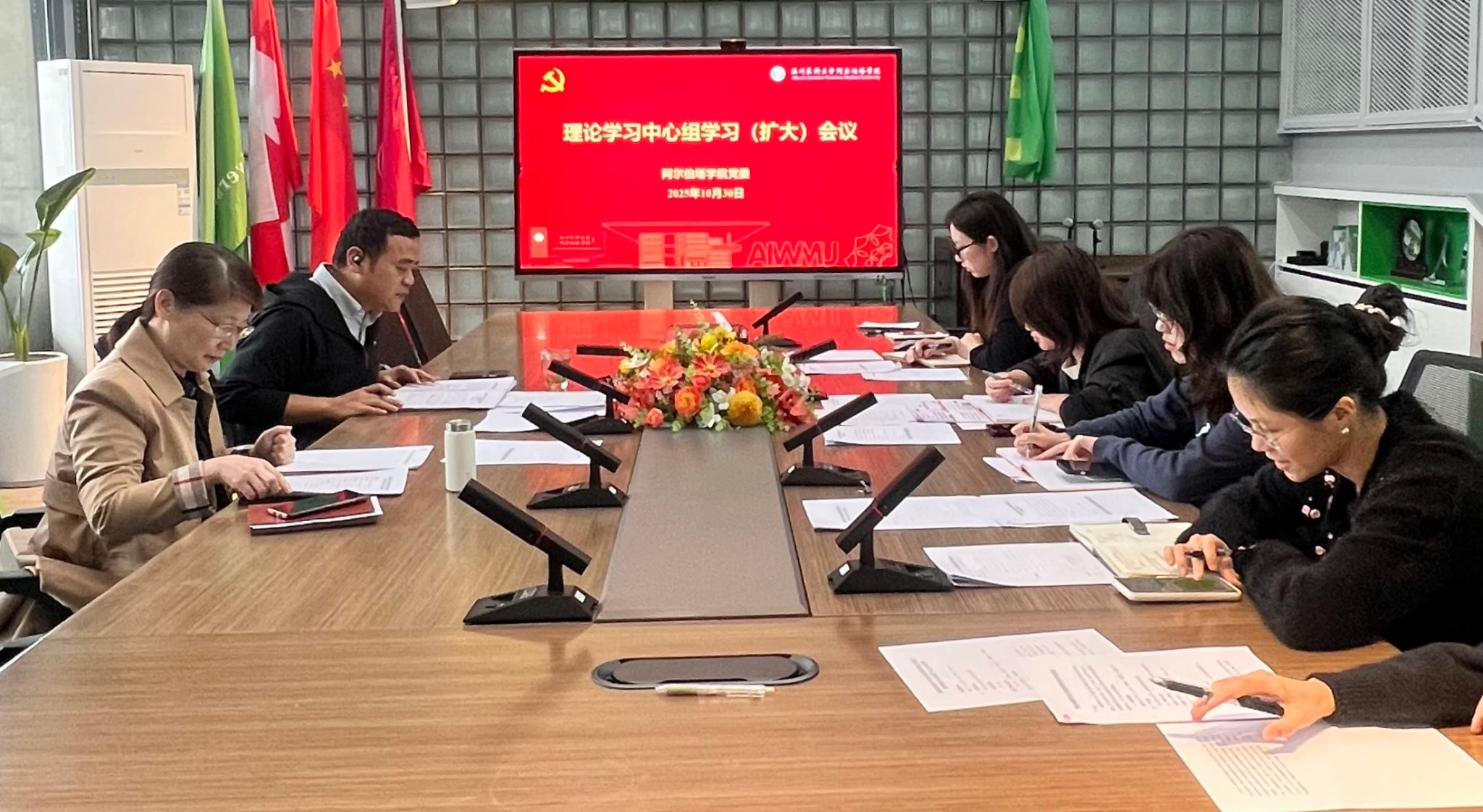 10月30日下午,阿尔伯塔党委理论学习中心组召开专题学习会,围绕《习近平谈治国理政》(第五卷)、《中国共产党思想政治工作条例》等内容进行集中学习。会议由党委副书记王小尚主持,全体教职工参会。
