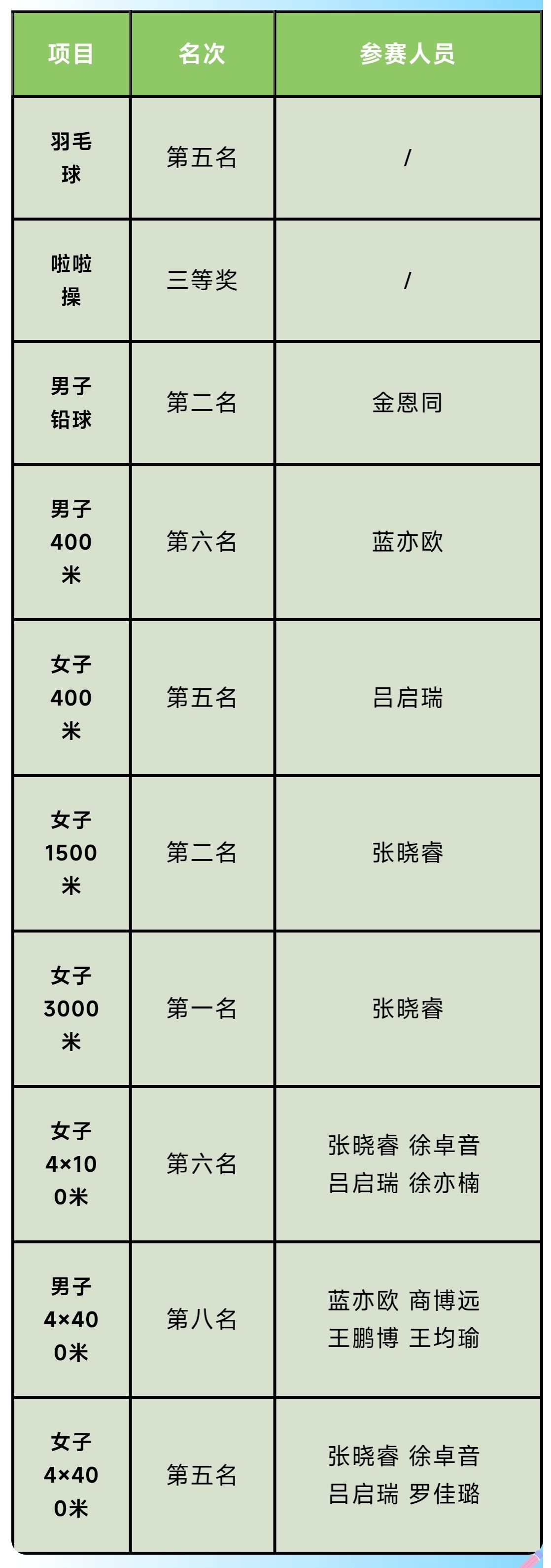 蓝亦欧斩获学生组男子400米第六名 吕启瑞斩获学生组女子400米第五名
