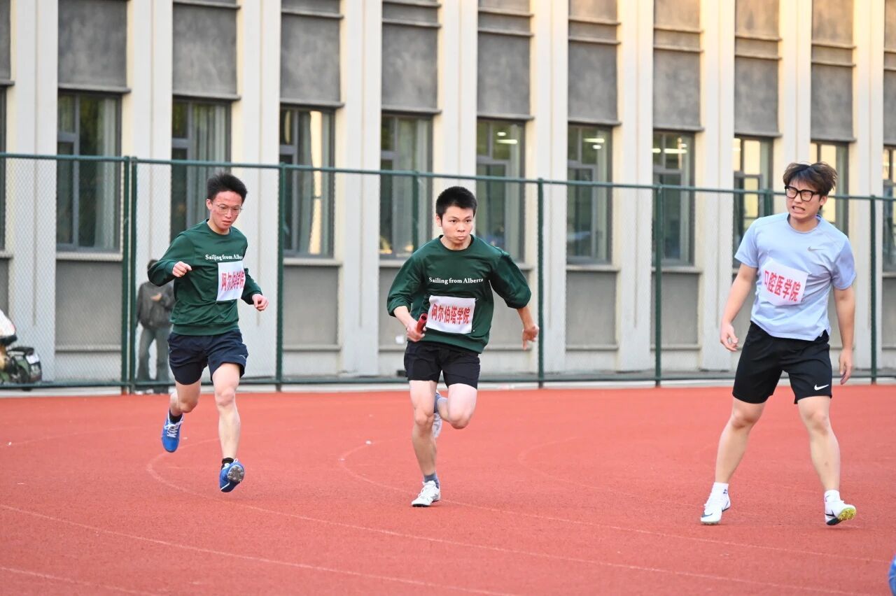 学院方阵队伍齐头并进,整齐划一的口号应声而起:“阿院当燃,我们超强!中西合力,势不可挡!”