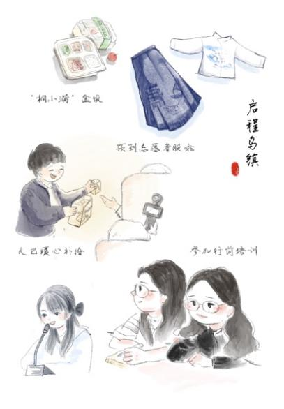 志愿服务间隙,我院陈韦妤同学发挥特长,用画笔和文字精心记录了这段难忘经历。她通过手绘长卷生动勾勒出乌镇的烟火气与志愿服务的点滴瞬间;一张张手写明信片详细记载了“日行两万步”的幕后坚守。这份独特的“小梧桐日记”,不仅充满了青春创意,更以温暖的方式展现了志愿者们眼中的峰会故事与真挚情怀。