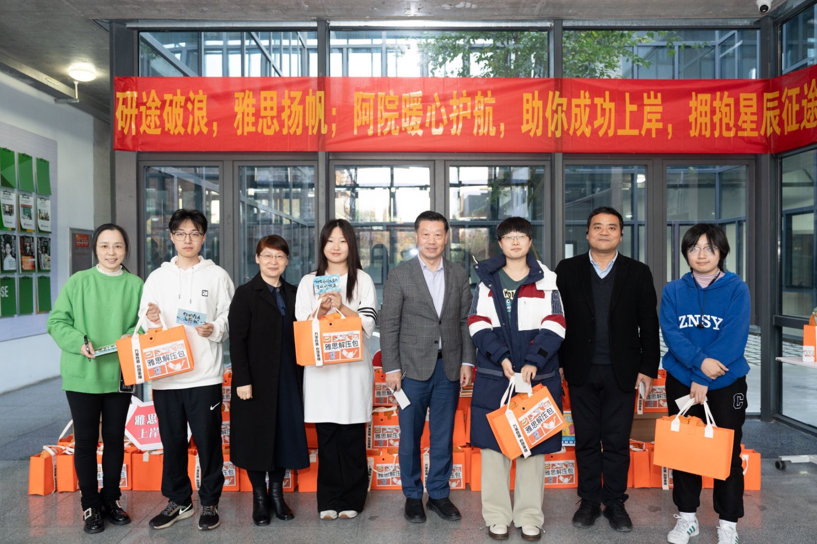 学院学工办为全体新生精心筹备了雅思解压包,将关怀与鼓励尽数打包。发放现场,老师们逐一为同学们送上解压包,还亲切地与每位同学合影留念。镜头下,一张张洋溢着笑容的脸庞,驱散了备考的疲惫,让同学们深切感受到学院的坚实支撑,更坚定了勇往直前的信念