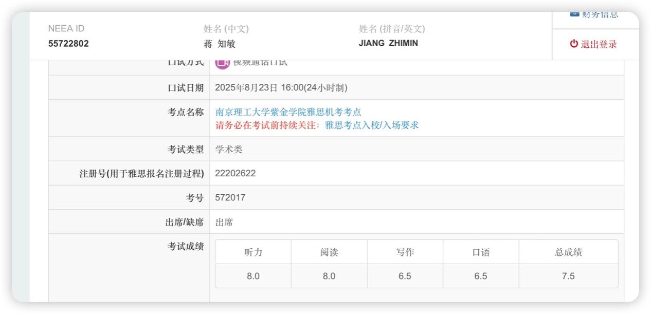 大家好,我是鉴黄师 2025级临床医学(中外合作)4班的蒋知敏。在高考结束后那个暑假,我利用四周时间集中备考雅思,并最终取得了首考7.5分的成绩。今天想结合我这段短期备考经历,希望能给正在备考雅思的同学们一些启发和鼓励。