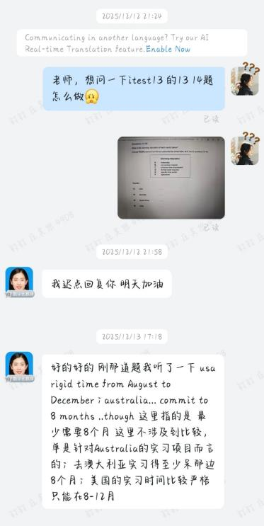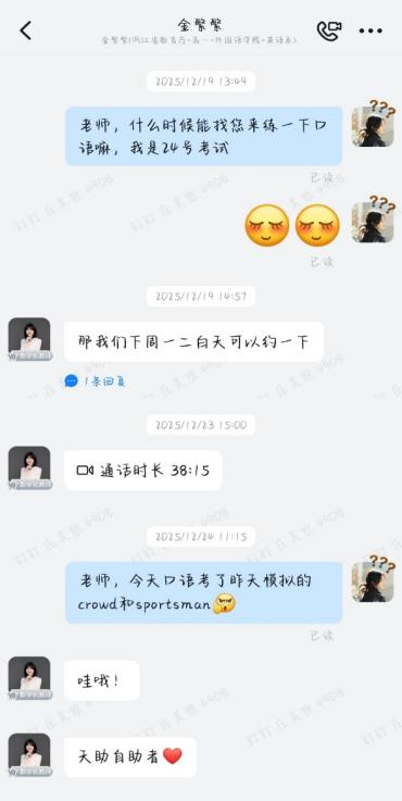 雅思口语考试每年会有三个换题季,因此考试前充分准备官方发布的题库至关重要。但光写不练只是纸上谈兵。考前一定要开口说。找老师或同学进行模拟对话是最有效的方法。既能帮我适应“有人听”的状态,也能当场指出我表达不自然或发音不标准的地方。繁繁老师和雅思“一帮一”的学姐在这方面给予了我巨大的帮助。练习时不需要追求完美答案,重点是锻炼即兴组织语言和临场发挥的能力。